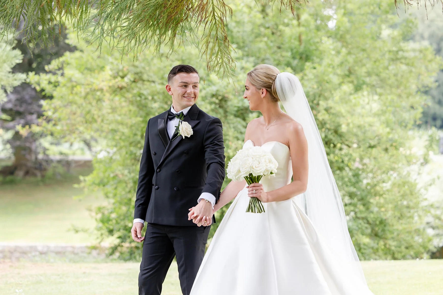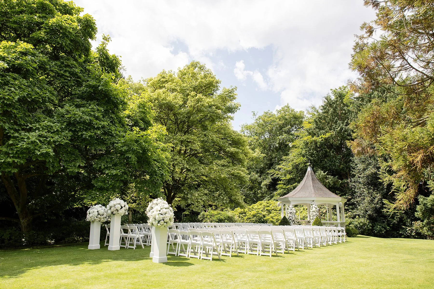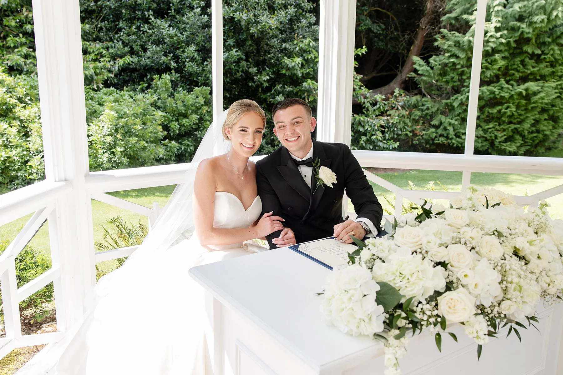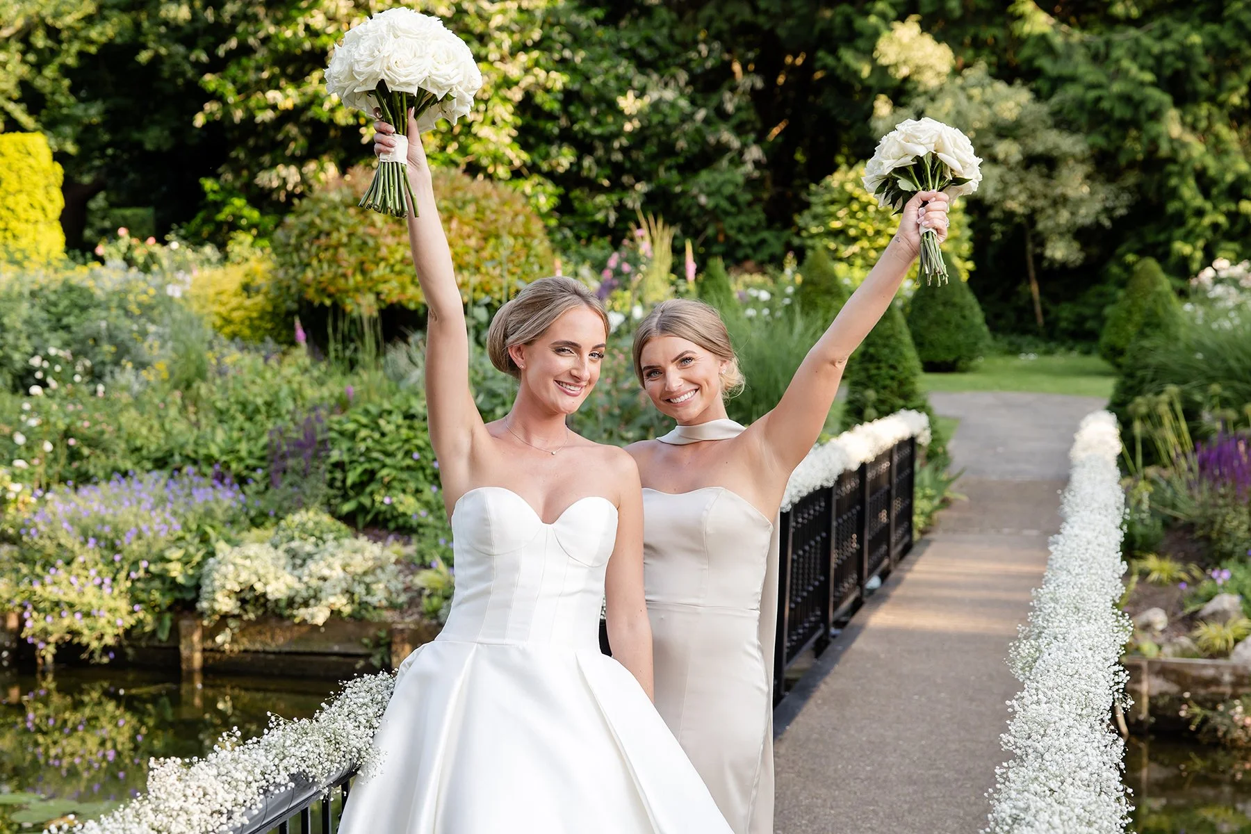 On a sunny day at The Orangery, it would be madness not to make good use of the stunning grounds for an outdoor ceremony. With the gardens in full bloom, Amy & Sam’s talented florist had created a dreamy installation for the ceremony, and matching centre pieces for the tables in a timeless white. Just perfect.