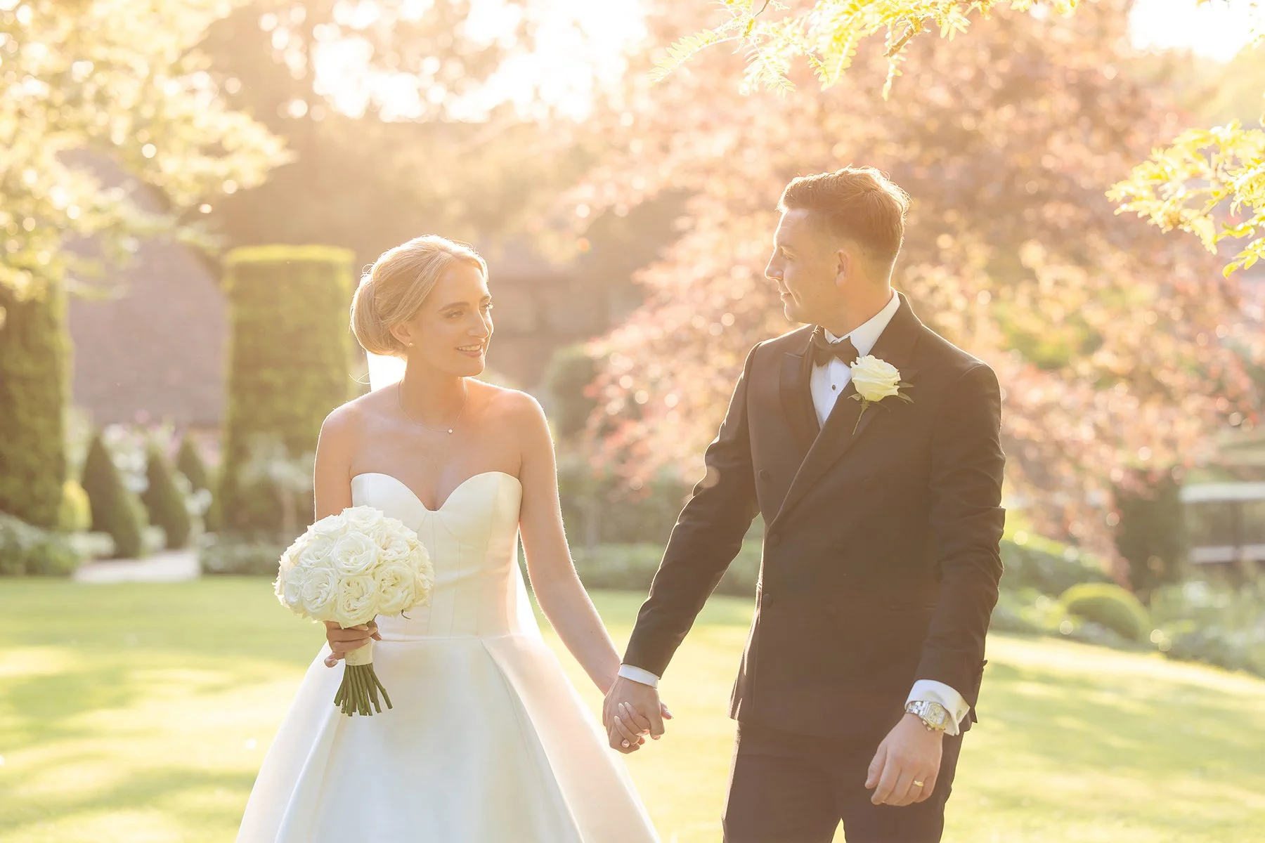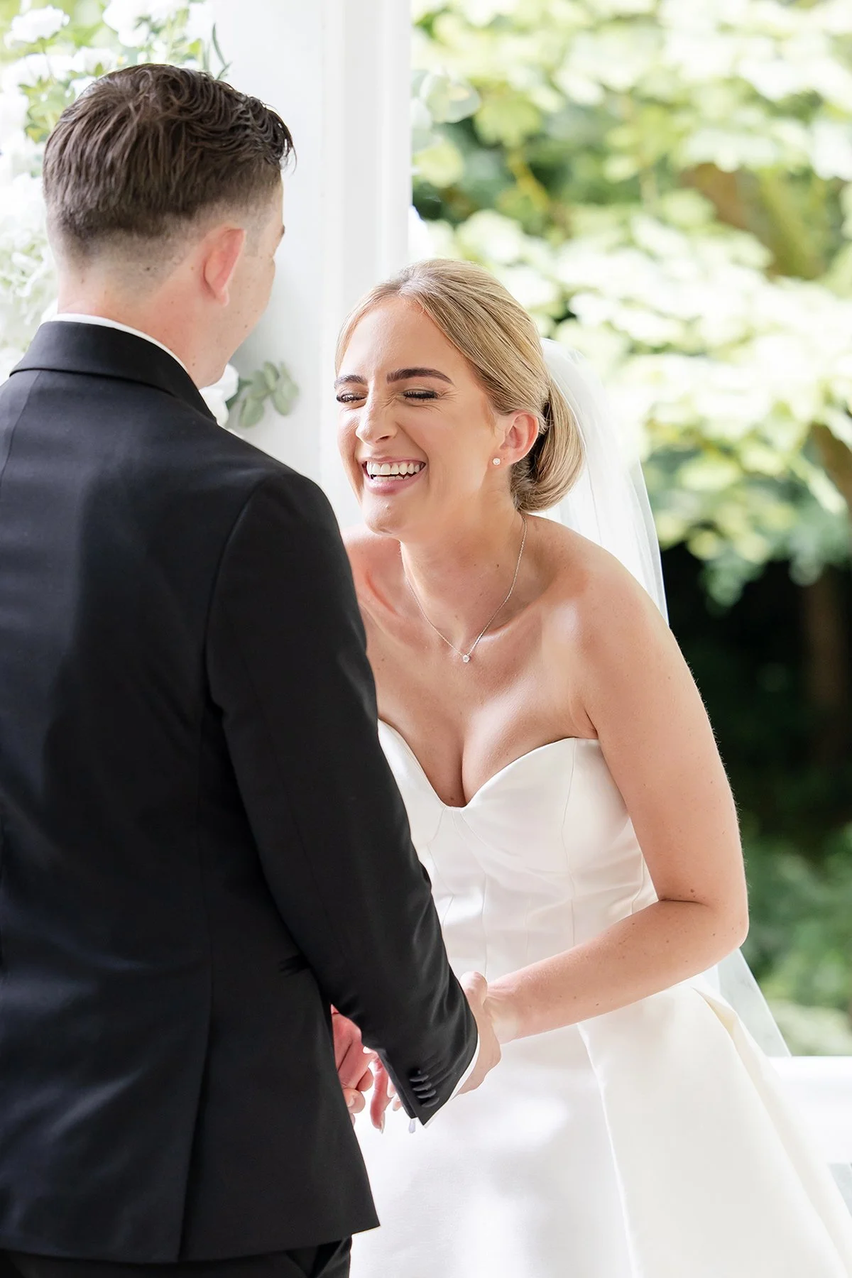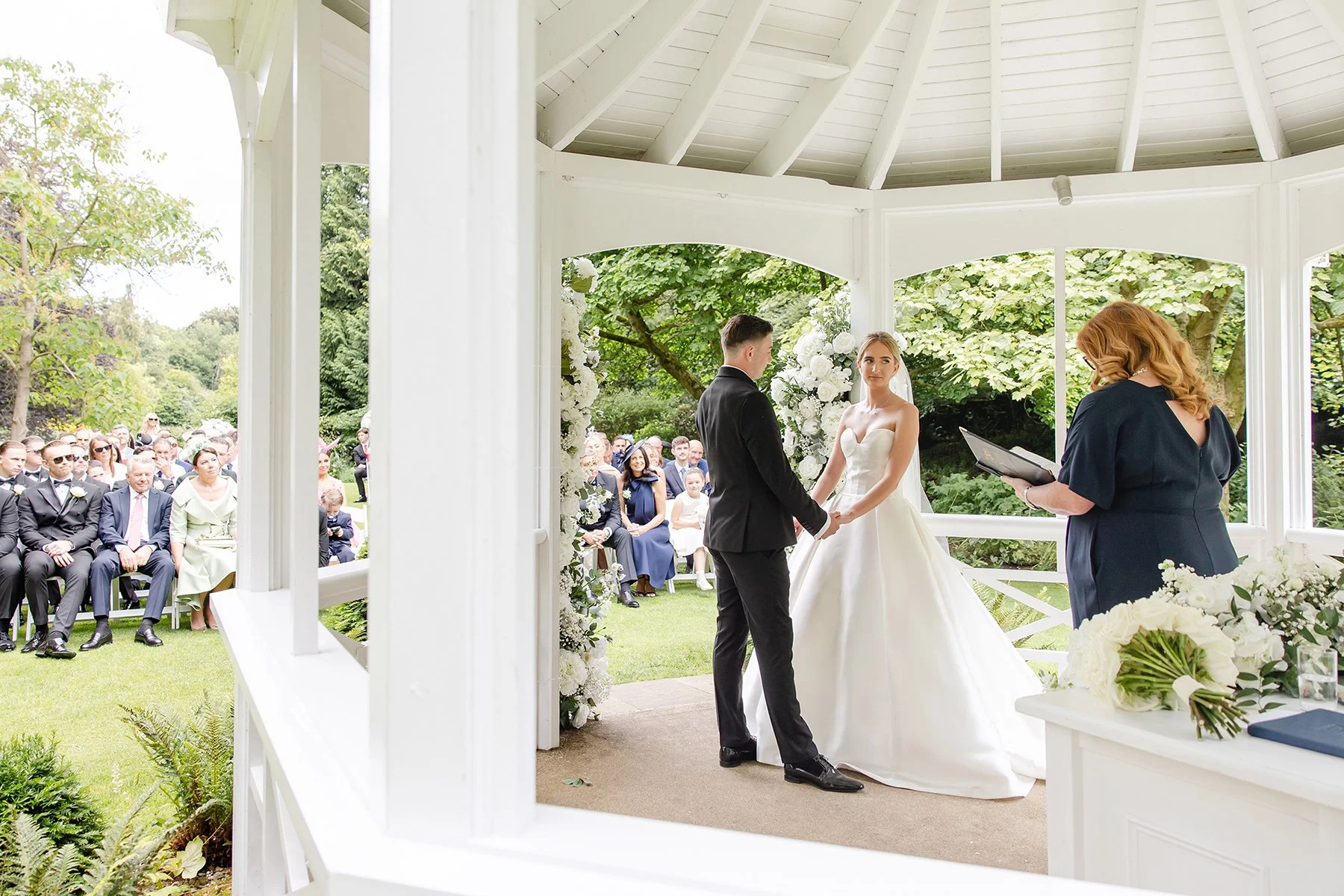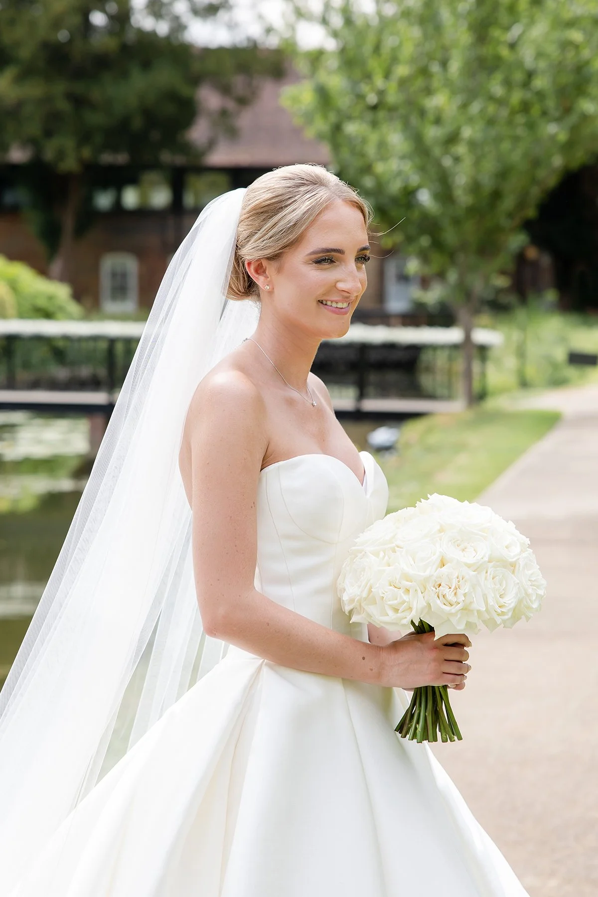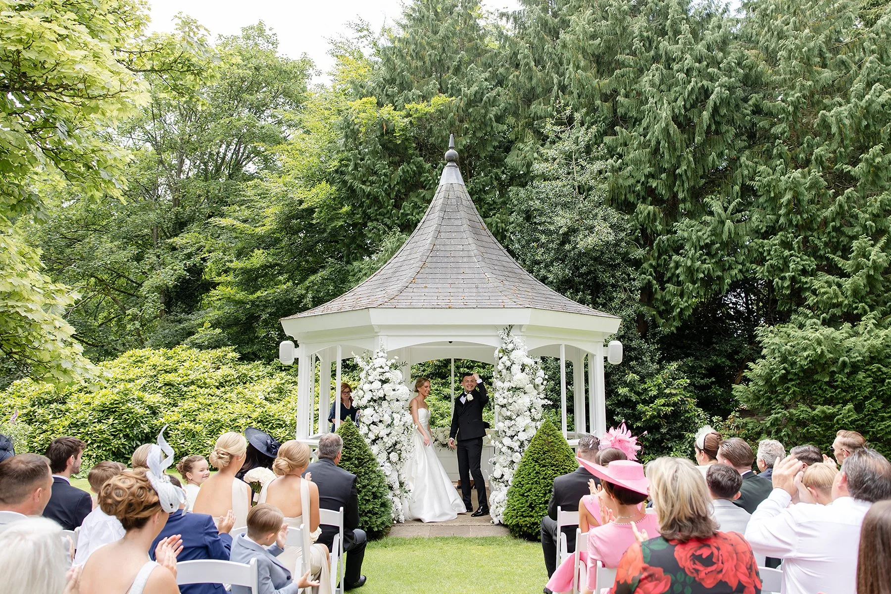 On a sunny day at The Orangery, it would be madness not to make good use of the stunning grounds for an outdoor ceremony. With the gardens in full bloom, Amy & Sam’s talented florist had created a dreamy installation for the ceremony, and matching centre pieces for the tables in a timeless white. Just perfect.