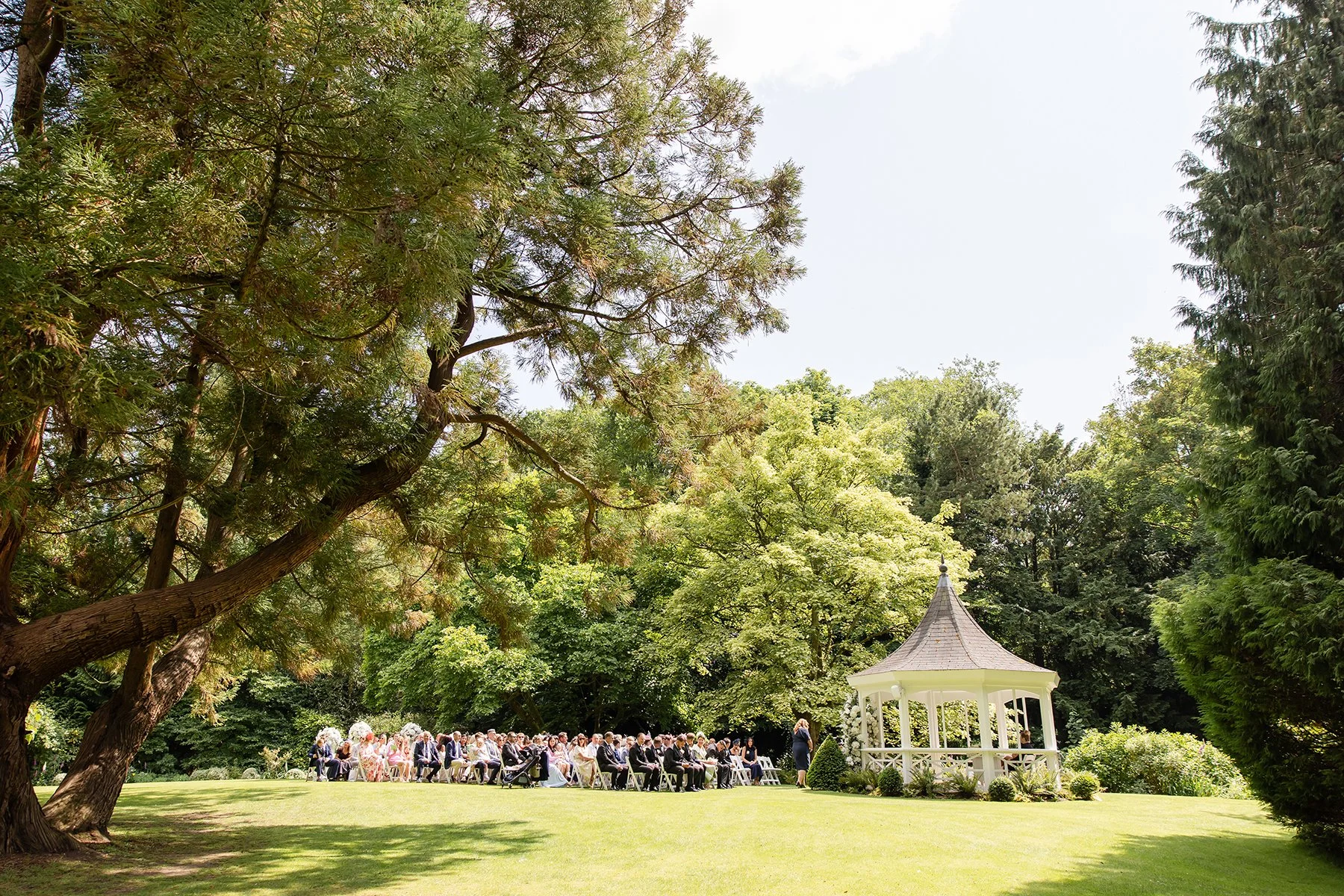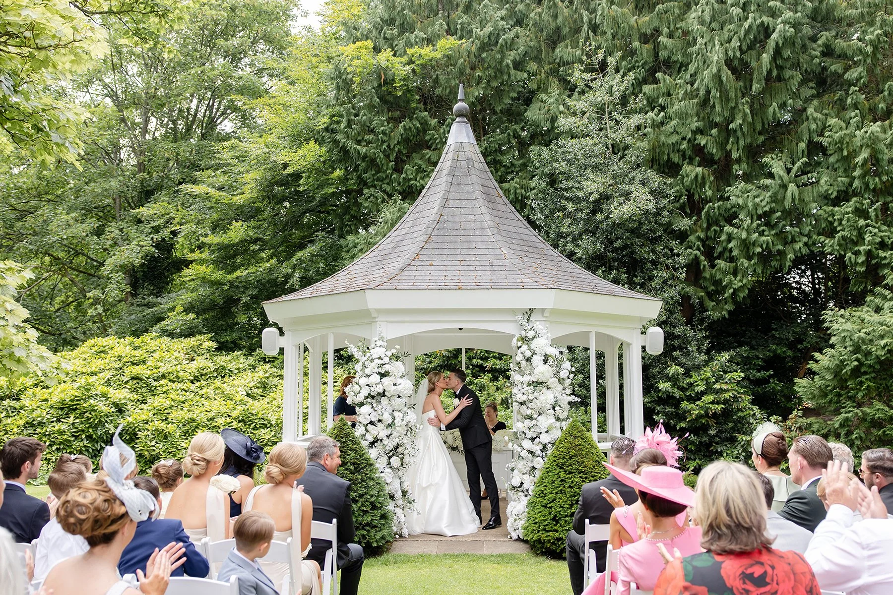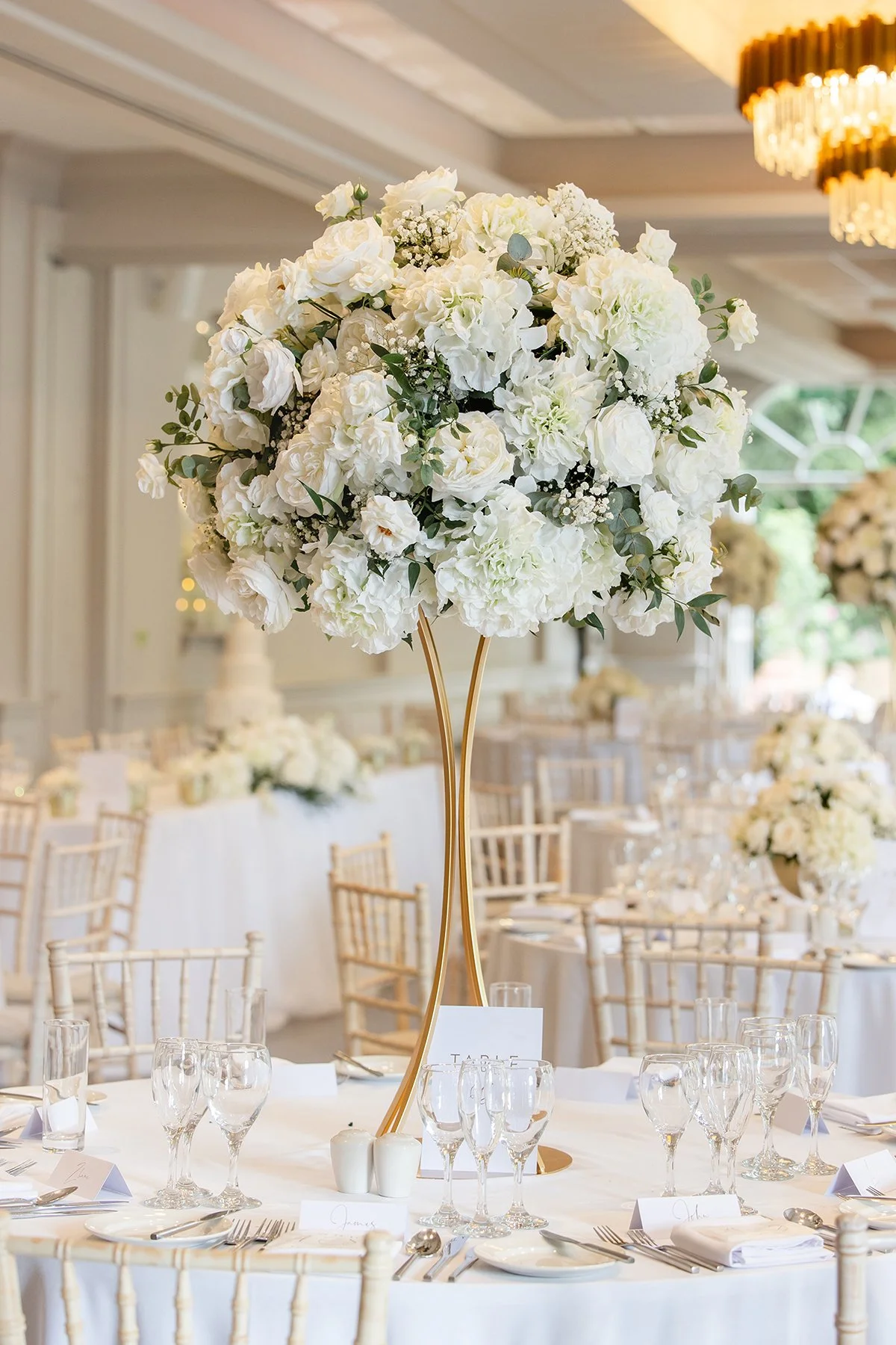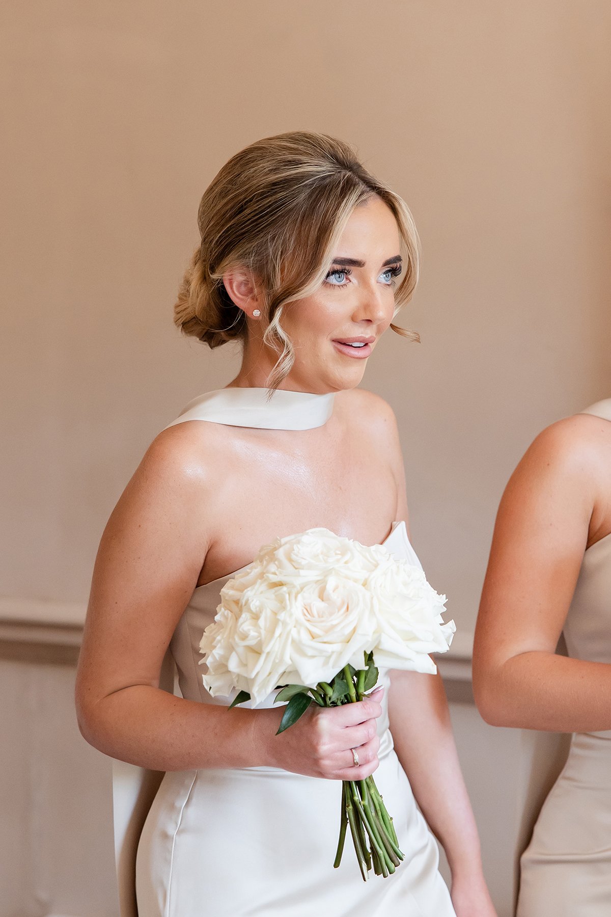 On a sunny day at The Orangery, it would be madness not to make good use of the stunning grounds for an outdoor ceremony. With the gardens in full bloom, Amy & Sam’s talented florist had created a dreamy installation for the ceremony, and matching centre pieces for the tables in a timeless white. Just perfect.