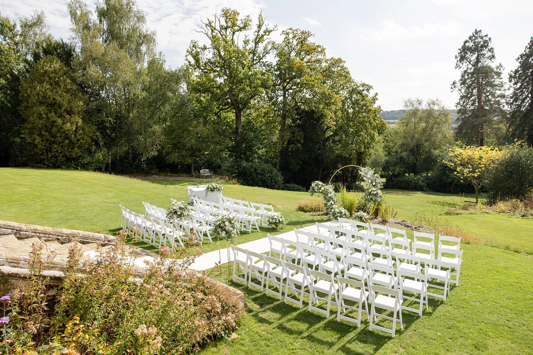 Emily & Nick’s ceremony was perfectly timed as it was followed almost immediately by a rain shower. Fortunately it didn’t last long, and we could head straight back outside to make the most of the incredible gardens and create some romantic portraits.