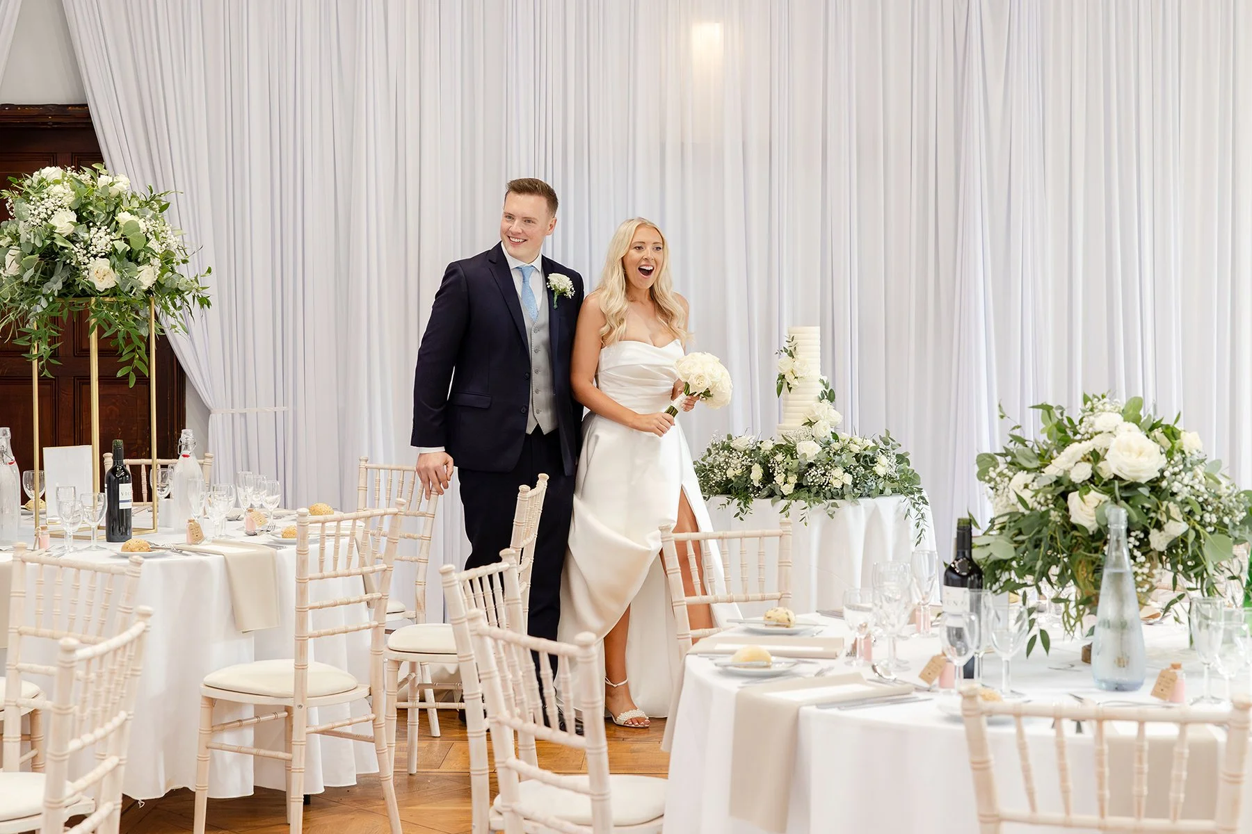 Emily & Nick both looked exceptional, as did the entire bridal party. My gorgeous couple had put so much thought into everything; the attention to detail was incredible and the results were beautifully elegant. The flowers and cake were especially impressive, and the reception space was showstopping. Even Emily & Nick couldn’t believe what their planning had achieved!