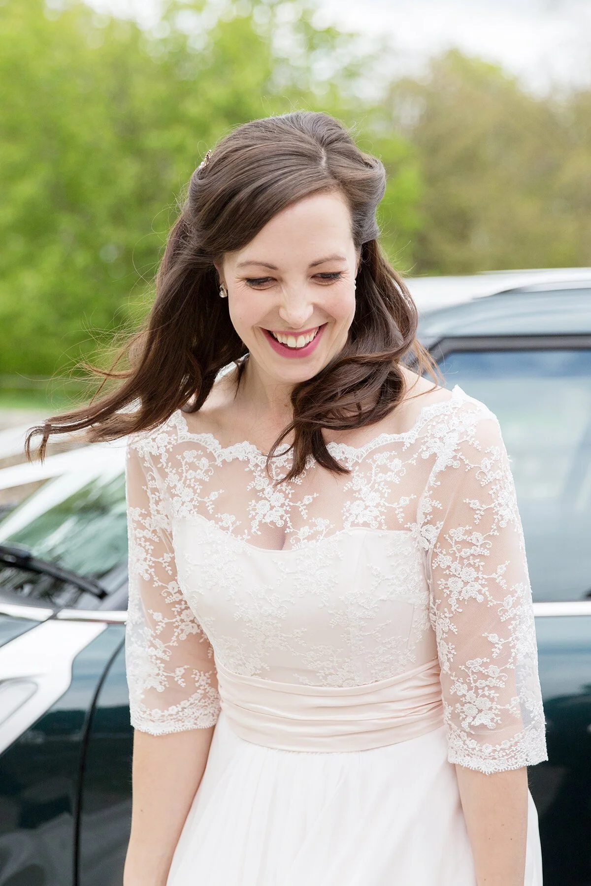When she arrived at the church she looked absolutely sensational in her blush wedding dress, I loved it! After the ceremony we took a few photos in the grounds of the church as it was a special place for Harriet, then Harriet & Jamie made their way to Hendall Manor Barns with the bridal party in a fleet of Mini's, and the rest of the guests in a red double decker bus.