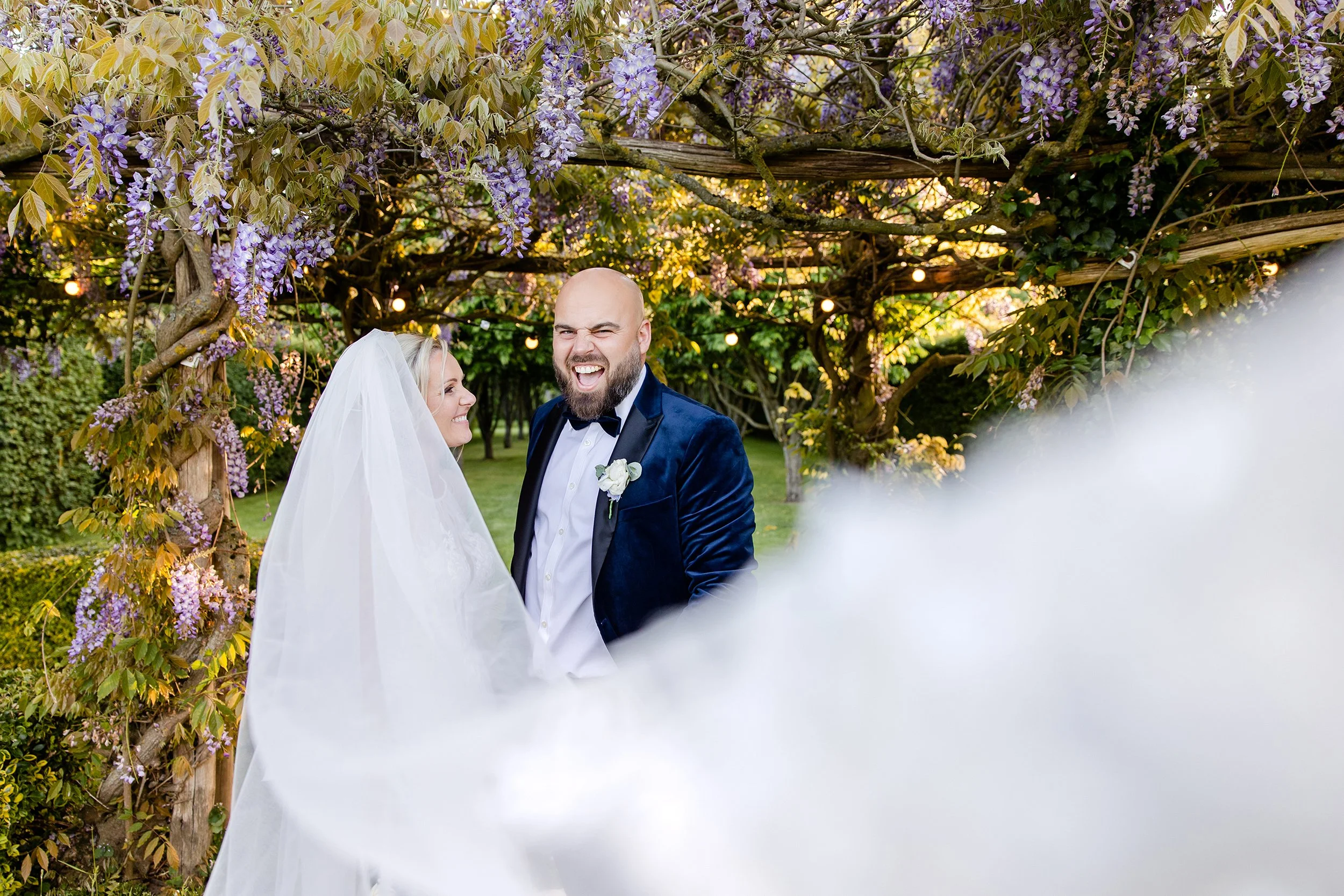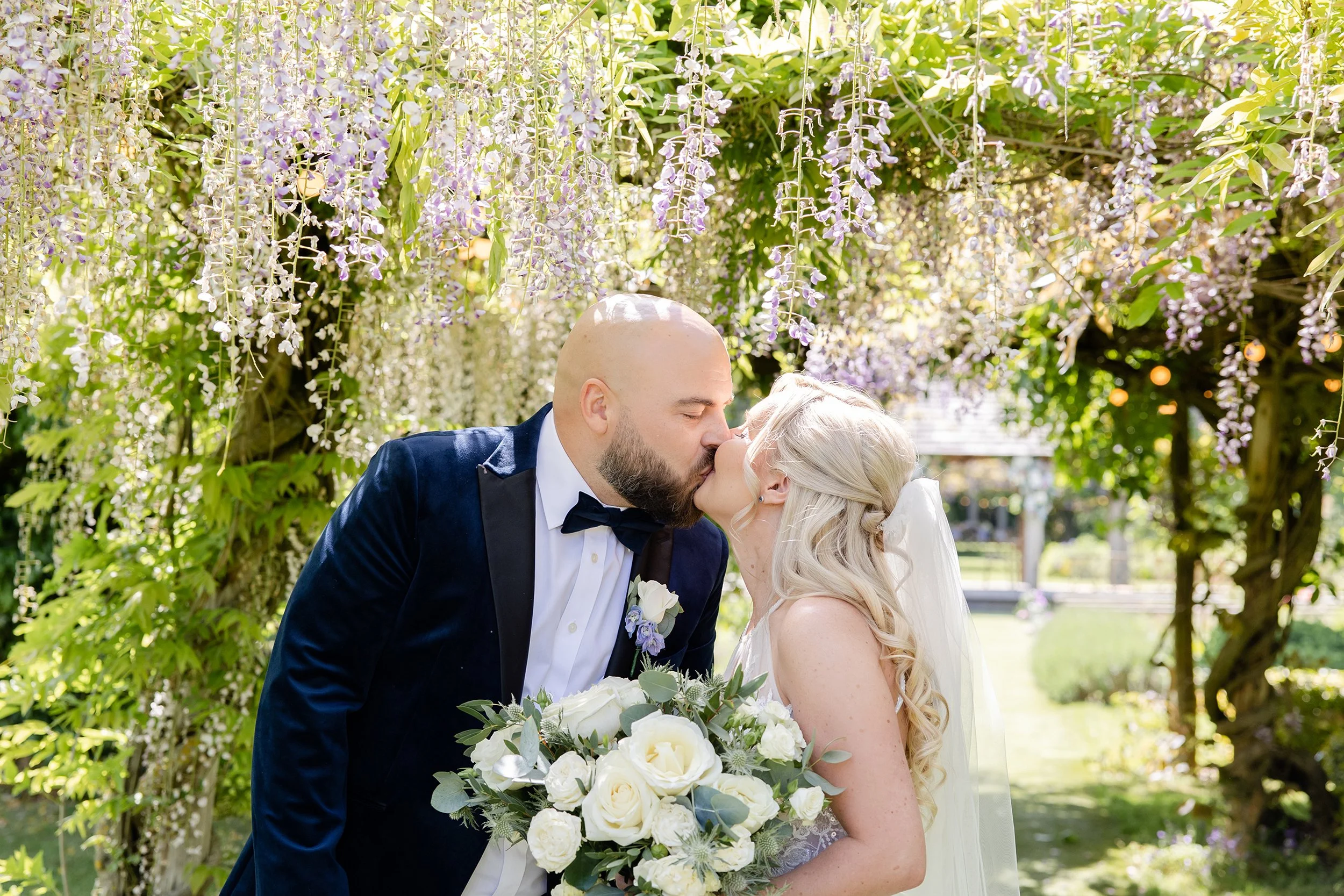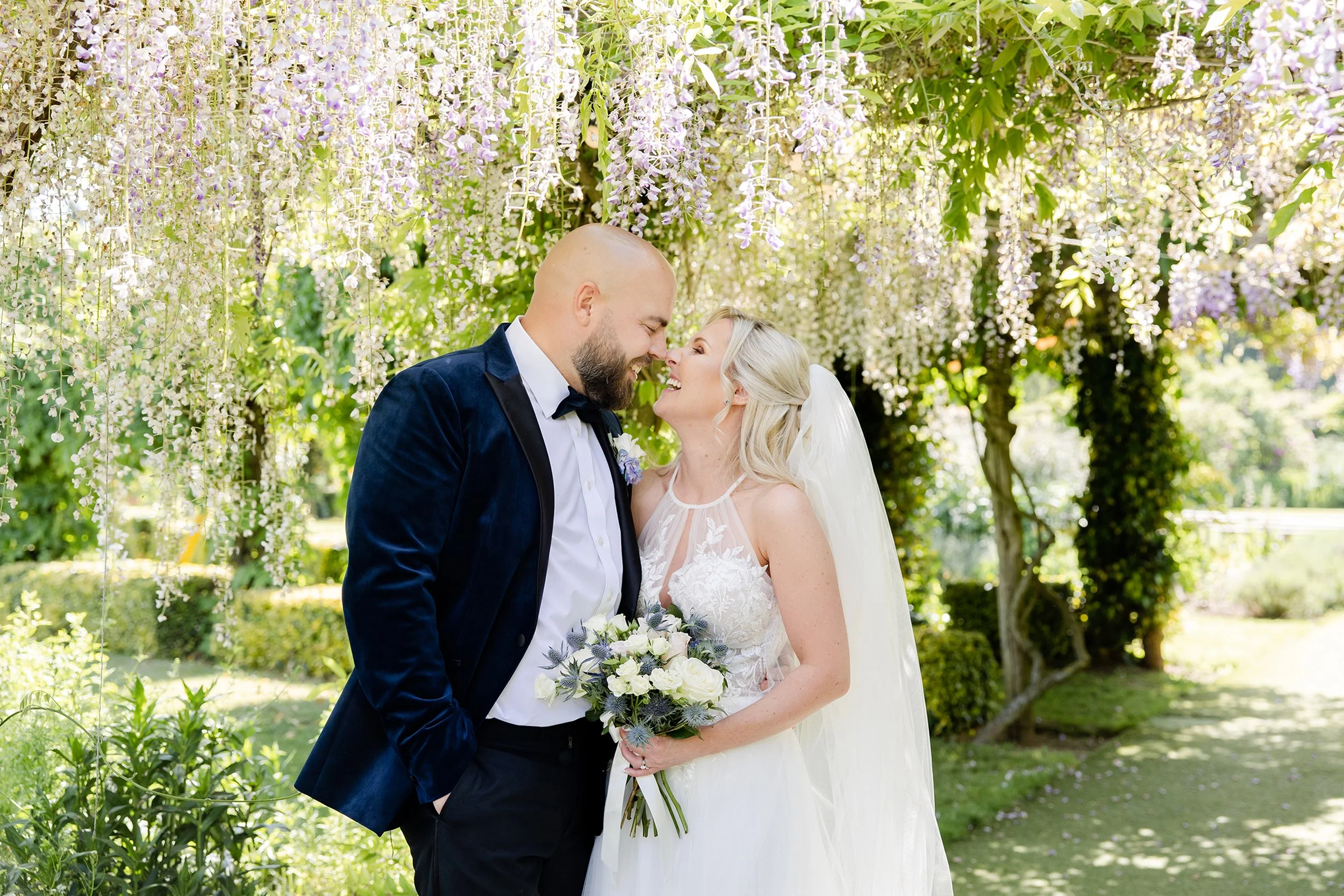 Katie & Paul had a gorgeously sunny wedding at The Gardens, Yalding! I knew it was going to be stunning, but it actually took my breath away when I arrived. Exquisite wisteria, beautiful flowers in full bloom wherever I looked and bright sunshine… there were photo opportunities in every possible corner!